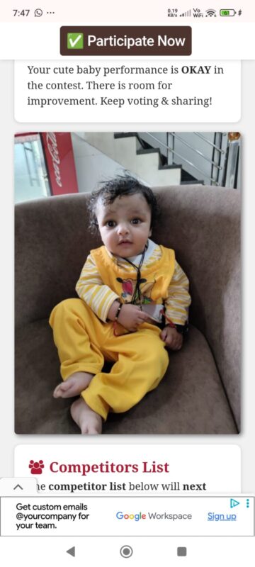 Your cute baby performance is OKAY in the contest. There is room for improvement. Keep voting & sharing!